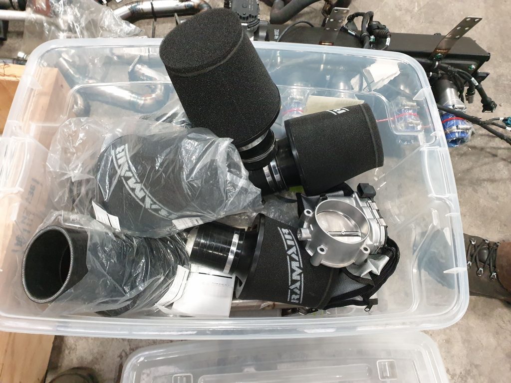Box of air filters and throttle bodies